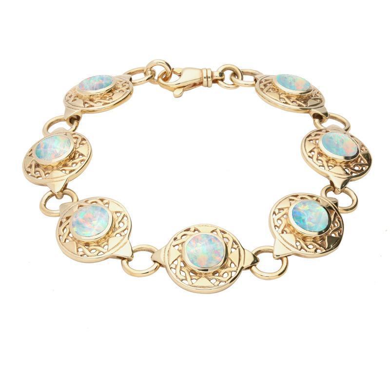 9ct Yellow Gold Opal Round Celtic Link Bracelet, B200.