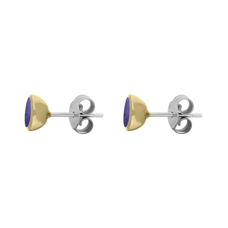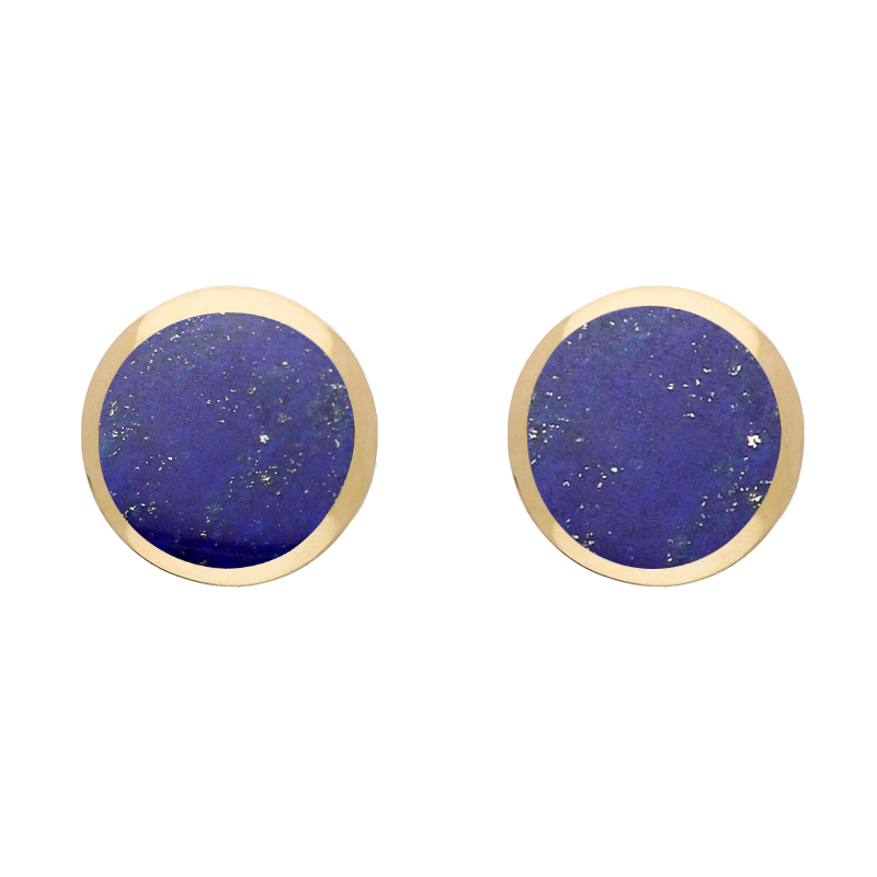 9ct Yellow Gold Sterling Silver Lapis Lazuli Stepping Stones Round Stud Earrings