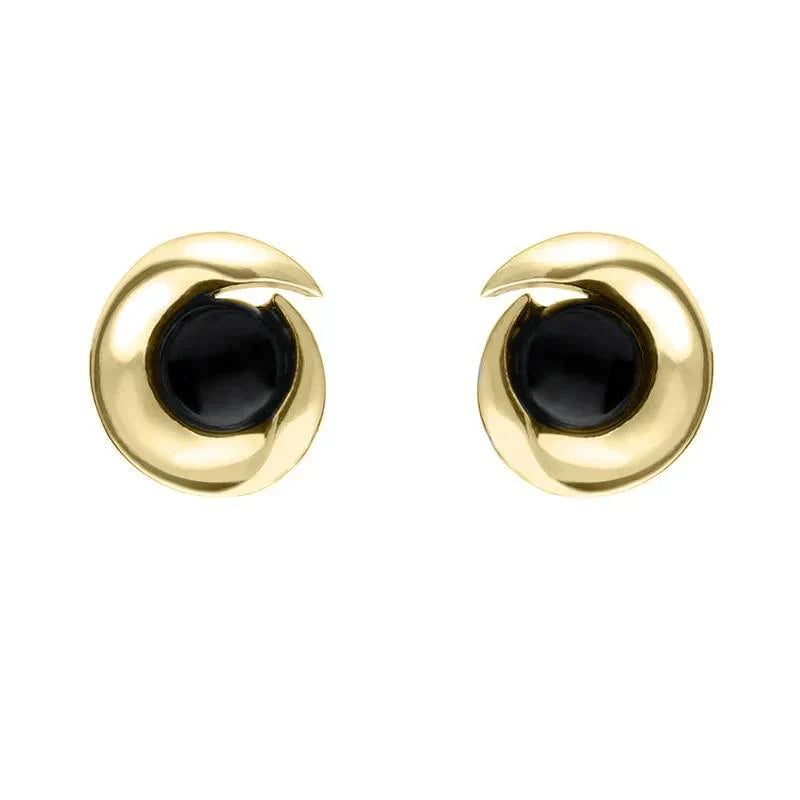 9ct Yellow Gold Whitby Jet Spiral Stud Earrings, E1913.
