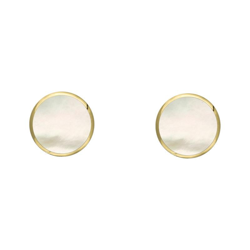 9ct Yellow Gold White Mother of Pearl 4mm Classic Small Round Stud Earrings, E001.