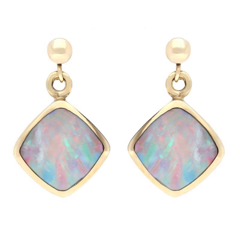 9ct Yellow Gold Opal Cushion Drop Earrings. E227.
