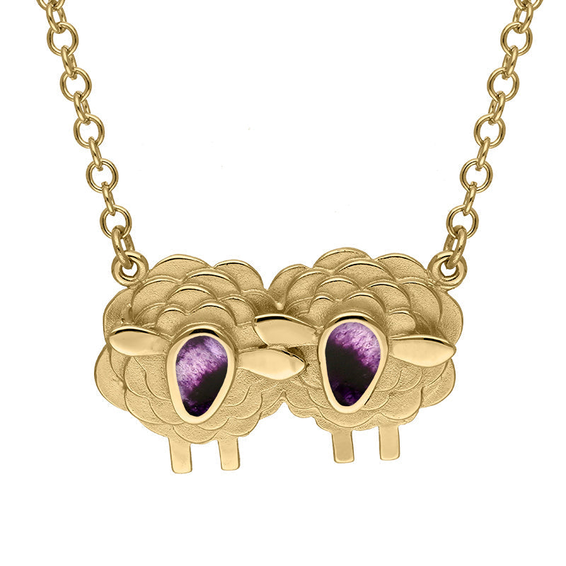 18ct Yellow Gold Blue John Two Large Sheep Necklace