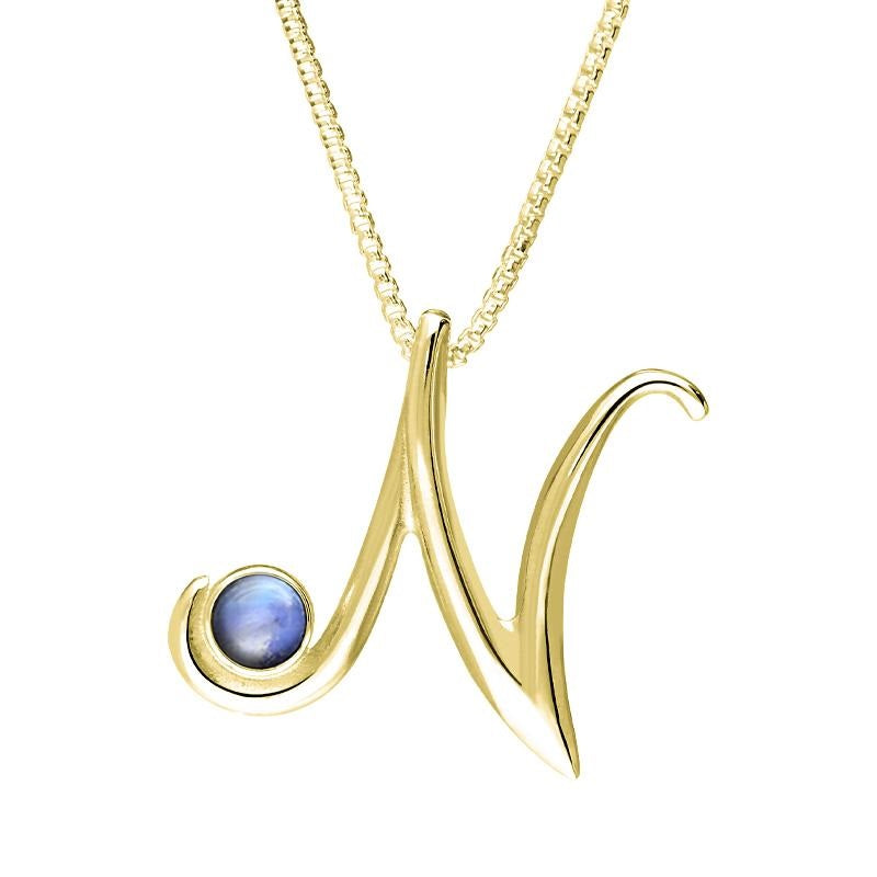 18ct Yellow Gold Moonstone Love Letters Initial N Necklace, P3461