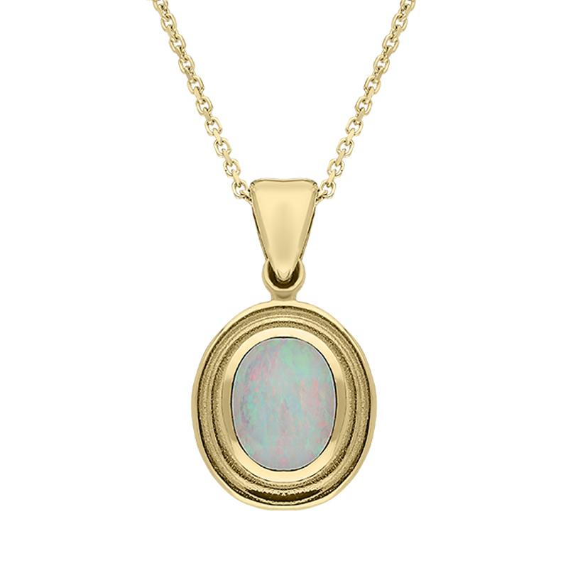 9ct Yellow Gold Opal Ribbed Small Oval Necklace, P243