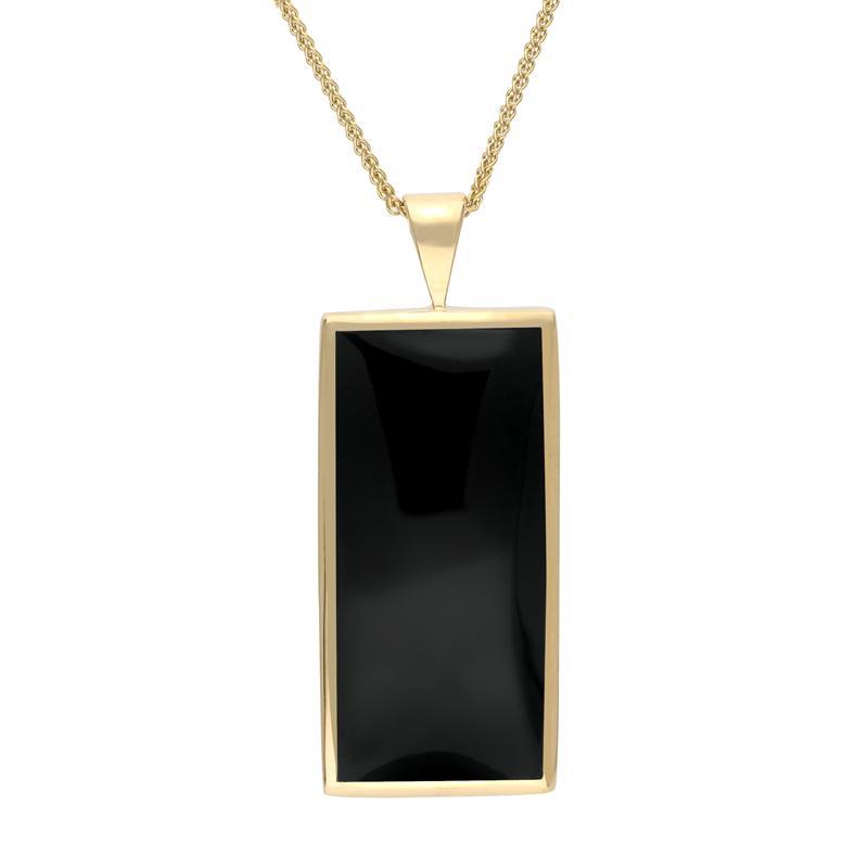 9ct Yellow Gold Whitby Jet Large Oblong Necklace, P078.