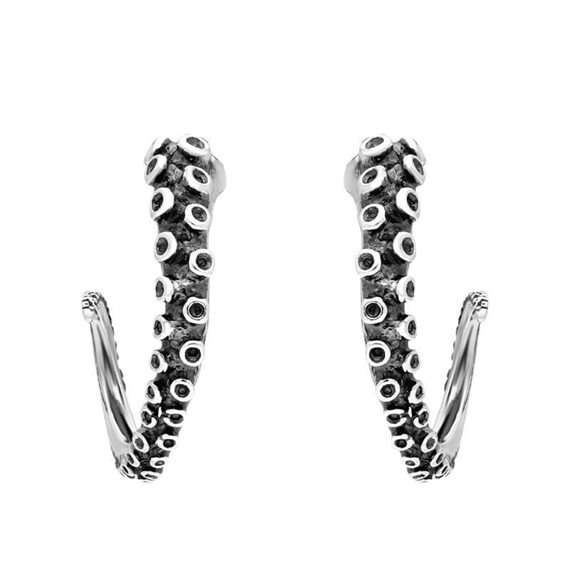 Discover our beautifully crafted Sea Life collection and add to it with these 18ct white gold tentacle hoop earrings. Our items make the perfect gift and become treasured memories for years to come. These hoop earrings contain a three-dimensional swirling tentacle, featuring 18ct white gold sucker detail. This item comes complete with a 18ct white gold post and butterfly fastening.
