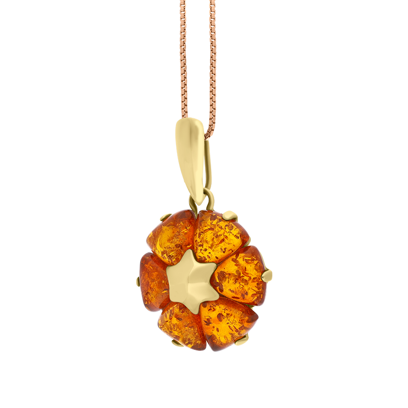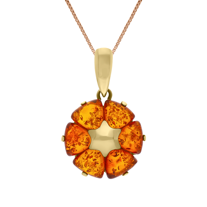 9ct Yellow Gold Amber Flower Pendant Necklace D