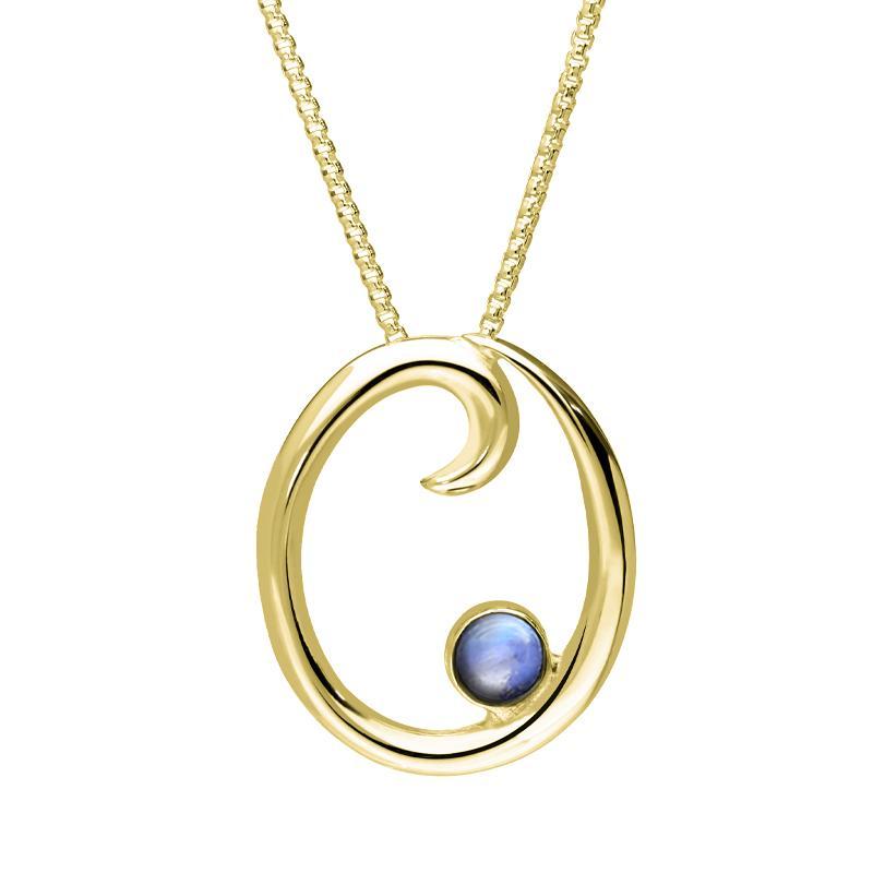 From the new 'Love Letters' collection designed and handcrafted in our very own workshop, this 9ct yellow gold necklace features an initial 'O' with a circular Moonstone. The pendant and stone hang elegantly from a 18 inch 9ct yellow gold chain.