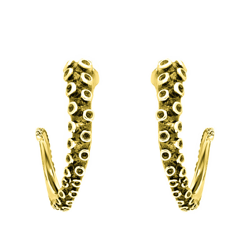 9ct Yellow Gold Tentacle Hoop Earrings