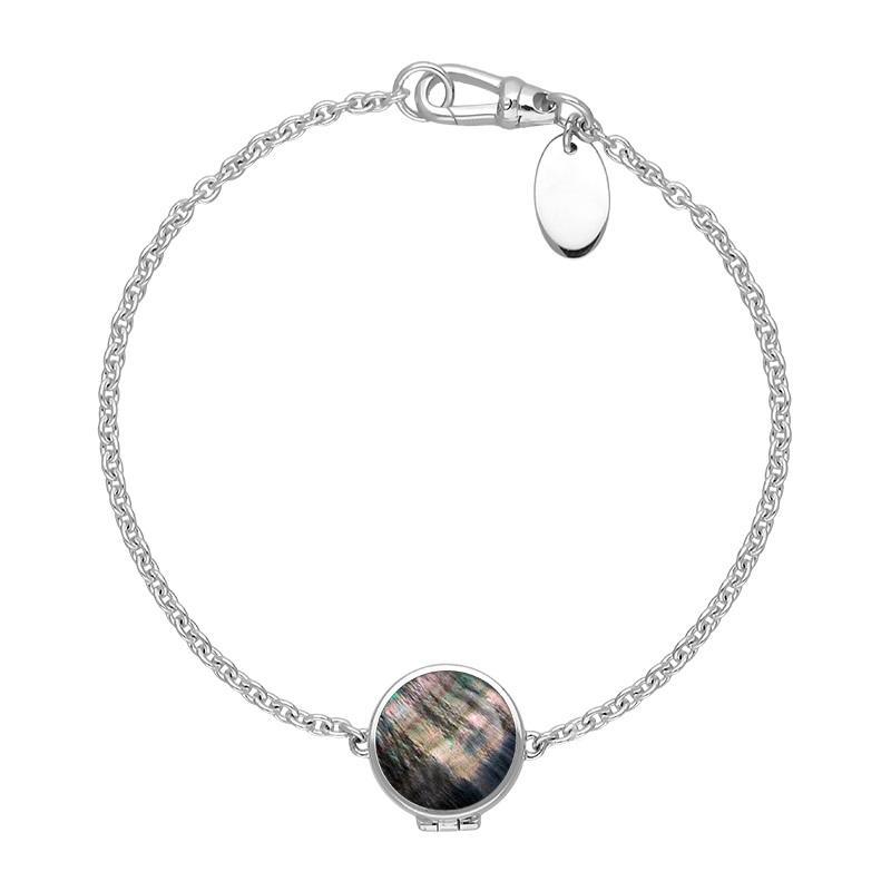 Sterling Silver Dark Mother of Pearl Round Locket Chain Bracelet, B1248.